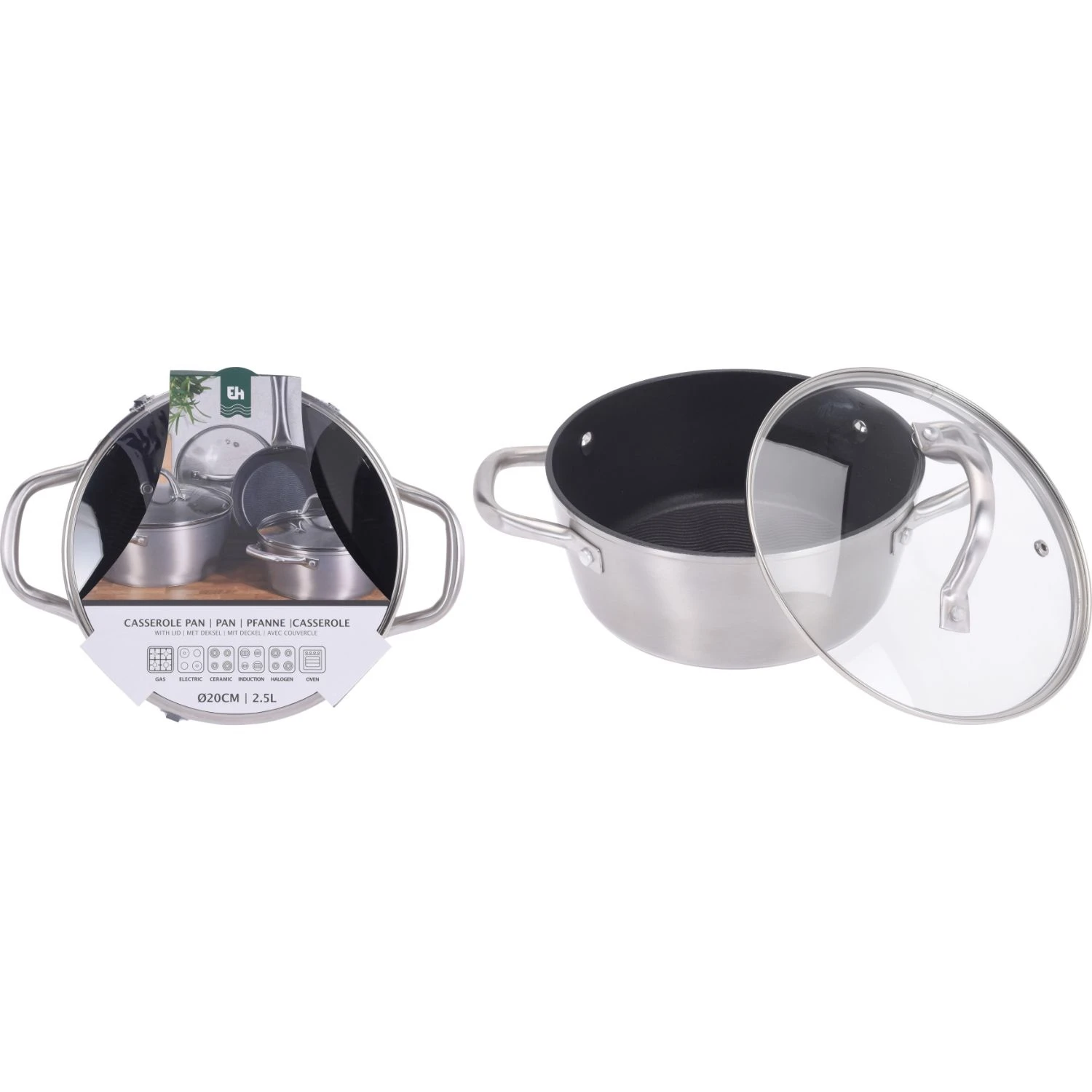 Jij kookt lekkerder in een Excellent Houseware kookpan! Deze pan heeft een diameter van 20cm, en een hoogte van 9cm. Daarmee komt de inhoud op 2,5 liter! De pan heeft bovendien een glazen deksel, anti-aanbaklaag en koudgrepen, zodat jij comfortabel kunt koken. Geschikt voor alle warmtebronnen, inclusief de oven. En na gebruik kan de pan gewoon in de vaatwasser.