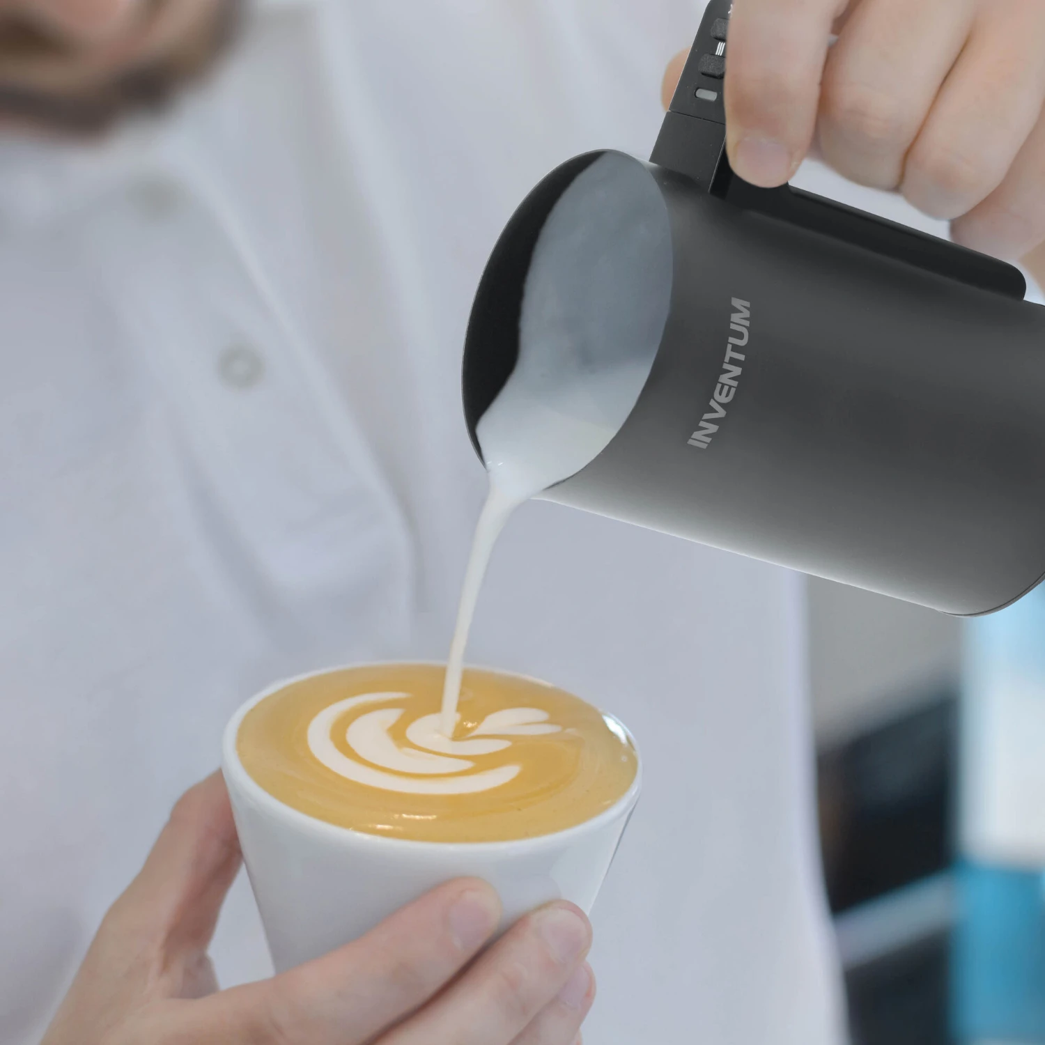 Met de Inventum melkopschuimer kun je tot 150 ml melk opschuimen en tot 300 ml melk verwarmen. De melkopschuimer is snoerloos bij te vullen en uit te schenken. Zodra het melkschuim of de warme melk klaar is, schakelt de melkopschuimer automatisch uit. In slechts 90 seconden heb je melkschuim en kun je genieten van een heerlijke cappuccino of latte macchiato. De speciale coating aan de binnenkant maakt het schoonmaken extra makkelijk.