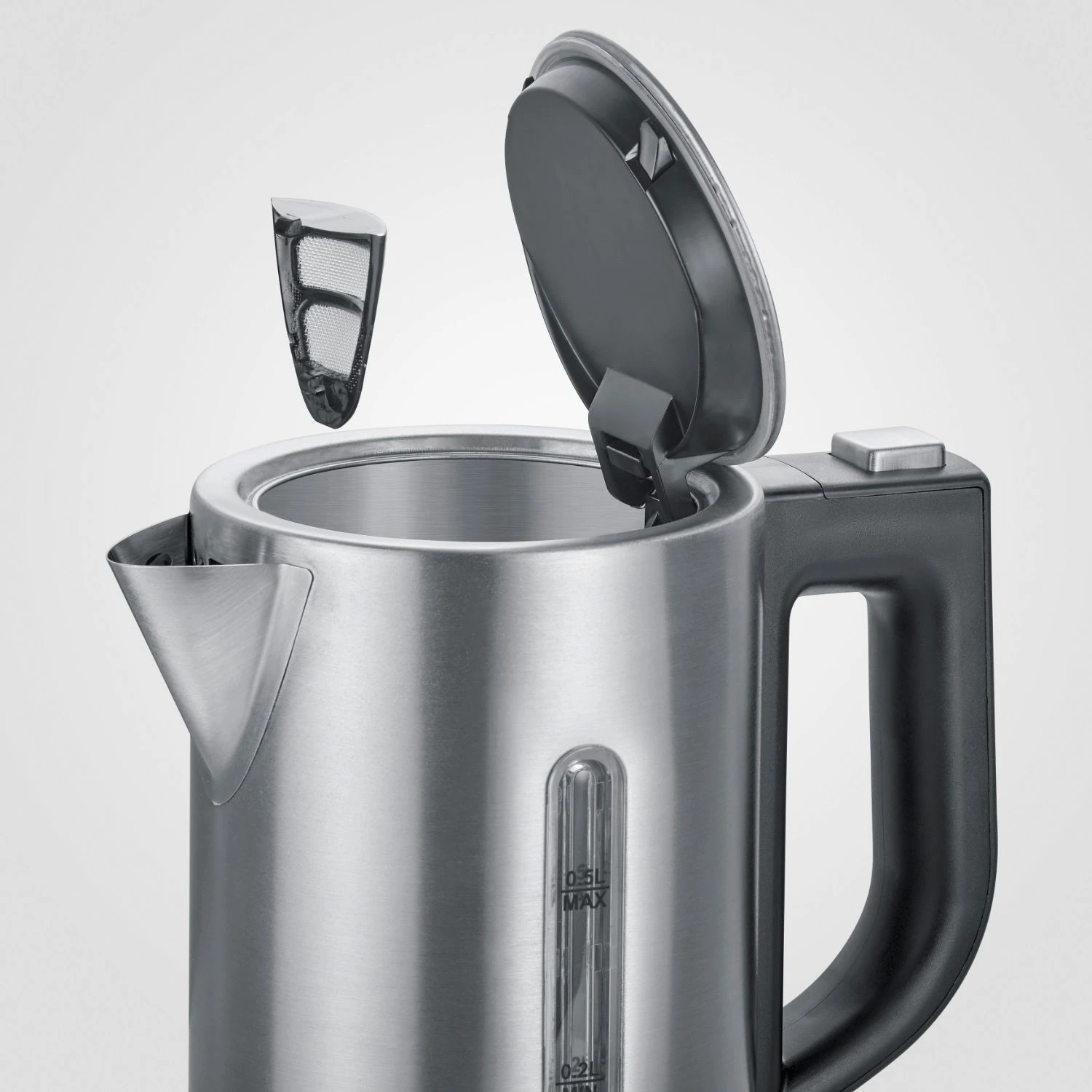 De Severin WK 3647 waterkoker is perfect voor op reis! De waterkoker heeft een compact formaat en een schakelbare spanning van 115/203 volt en is daarmee ideaal voor kampeertrips of in hotels. De waterkoker is veilig en comfortabel te bedienen dankzij de 1-handbediening en de frontale waterniveau-indicator. Naast de waterkoker ontvang je ook twee veilige BPA-vrije plastic bekers met twee bijpassende lepels.